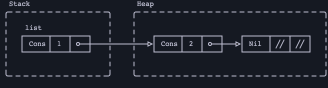 8 let list: List<i32> = List::Cons(1, Box::new(List::Cons(2, Box::new(List::Nil))));